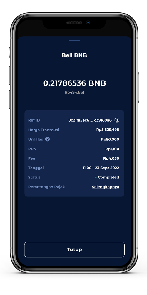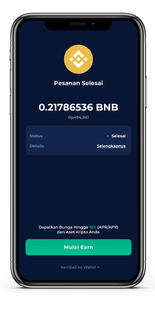 Setelah konfirmasi dari kamu, maka pemesenan kripto kamu telah dimasukan. Harap tunggu beberapa saat hingga aset kripto yang kamu beli masuk ke dompet akunmu.
