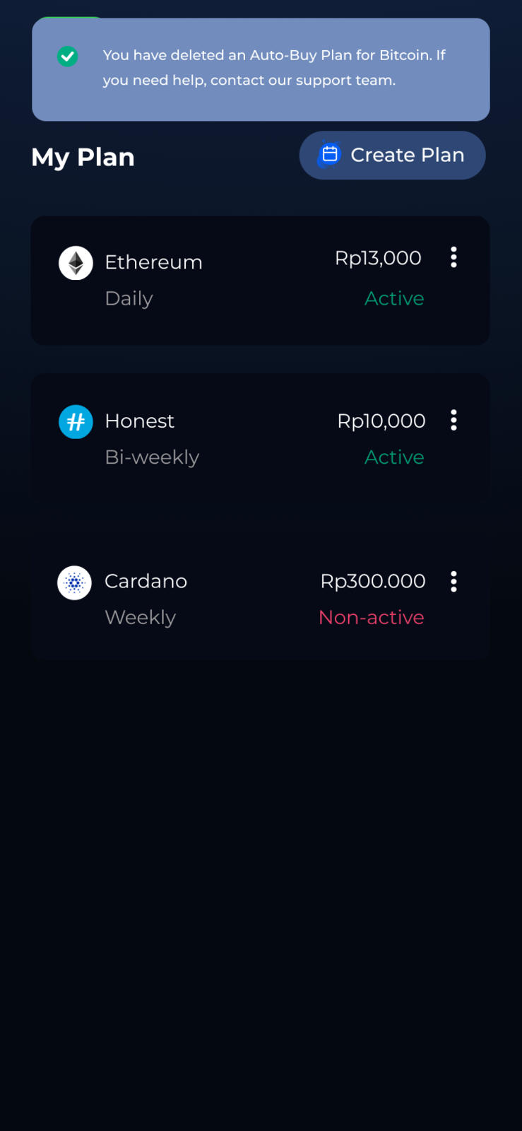 Step 4: You have deleted the Auto-Buy plan for your selected crypto asset.